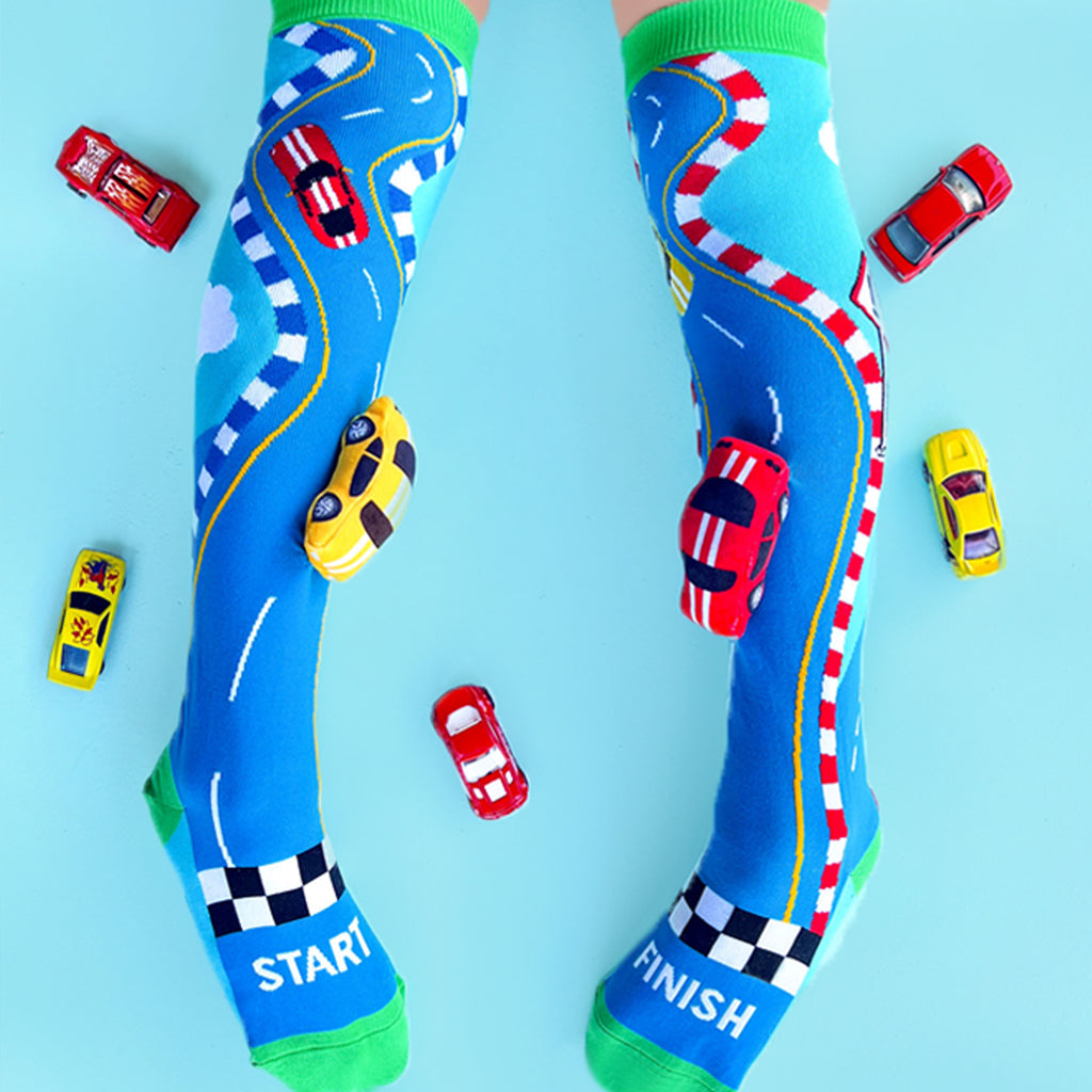 A range of colourful wacky socks is available for babies aged 1-2 as well as a MADMIA toddler range of crazy fun socks for kids aged 3-5. Our most popular crazy socks designs are ideally sized for kids & teens but can fit ages 6-99. MADMIA has some groovy socks designs for adults too. These bright & bold fun knee high socks in cool designs fire up the fun factor so you shine bright like a star!