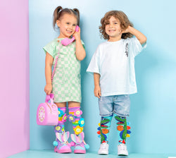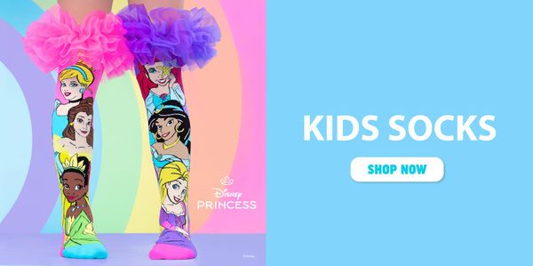 A range of colourful wacky socks is available for babies aged 1-2 as well as a MADMIA toddler range of crazy fun socks for kids aged 3-5. Our most popular crazy socks designs are ideally sized for kids & teens but can fit ages 6-99. MADMIA has some groovy socks designs for adults too. These bright & bold fun knee high socks in cool designs fire up the fun factor so you shine bright like a star!
