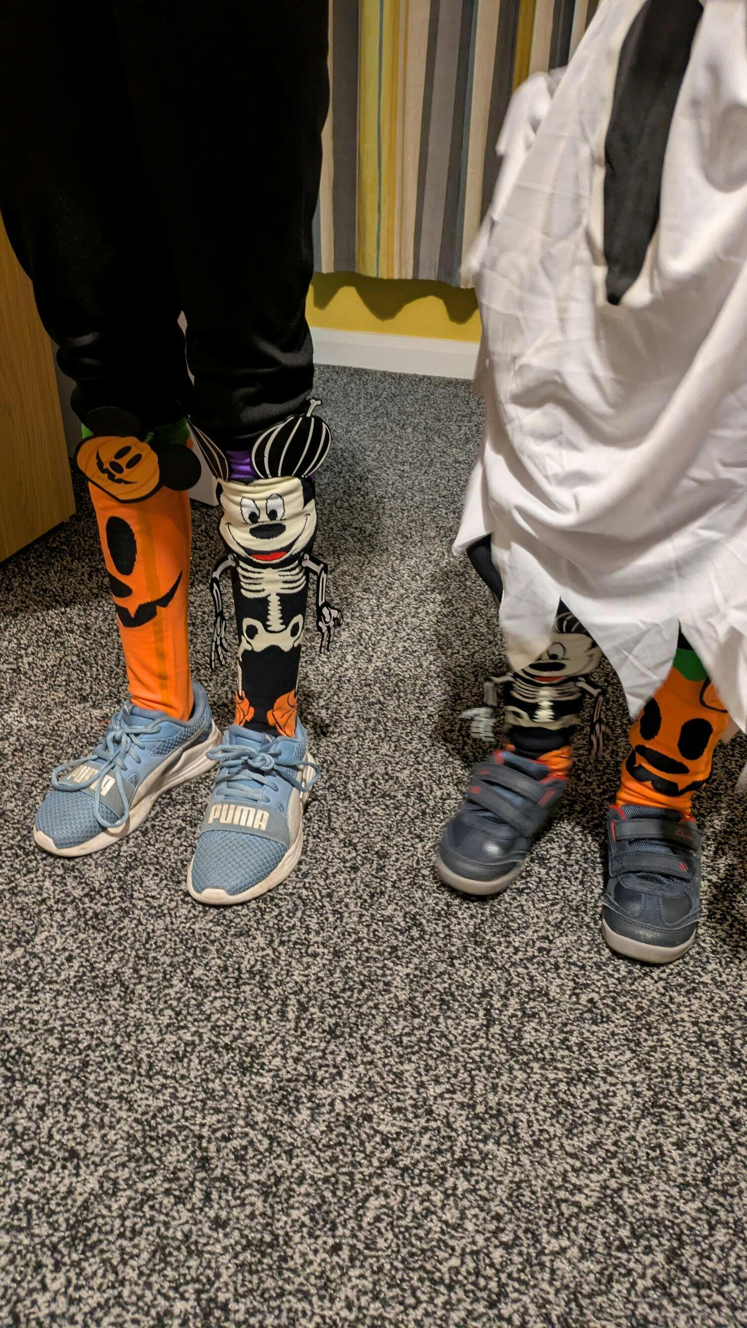 Step into the spooky season with our vibrant, mismatched Halloween-themed Mickey & Pumpkin socks! Featuring a fun Mickey skeleton and quirky pumpkin design, these glow-in-the-dark socks are perfect for trick-or-treating or Halloween parties 🎃