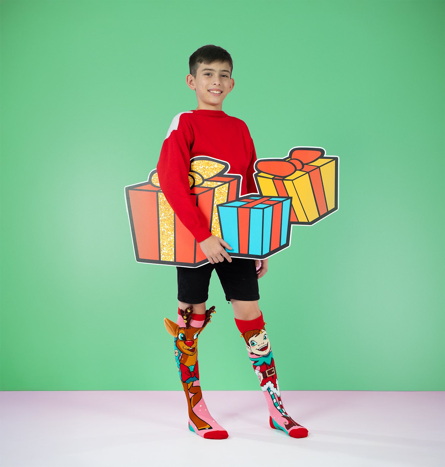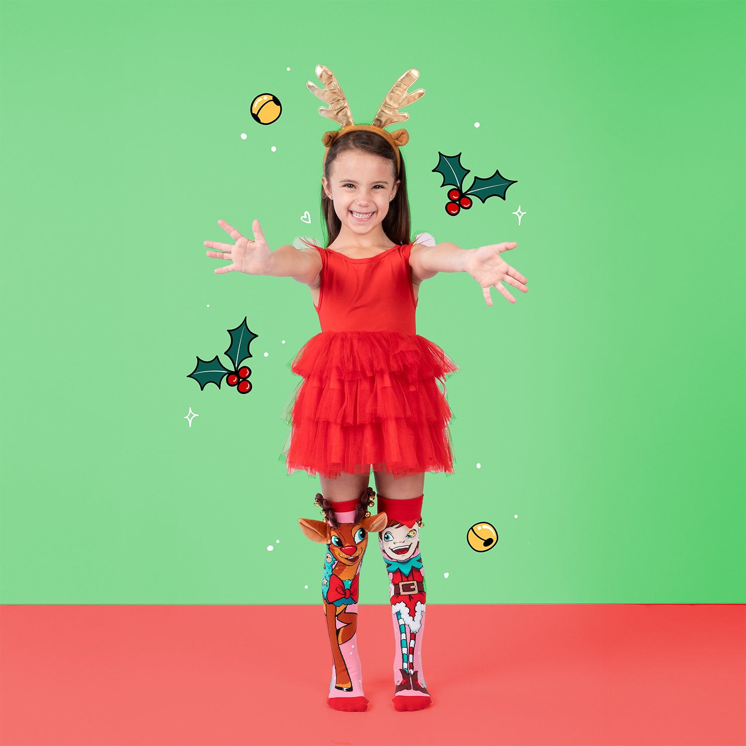 Get festive with MADMIA’s Reindeer & Elf Socks! Featuring plush antlers with jingling bells and a cheeky elf hat, this fun mismatched pair is perfect for kids and adults to celebrate Christmas in style.